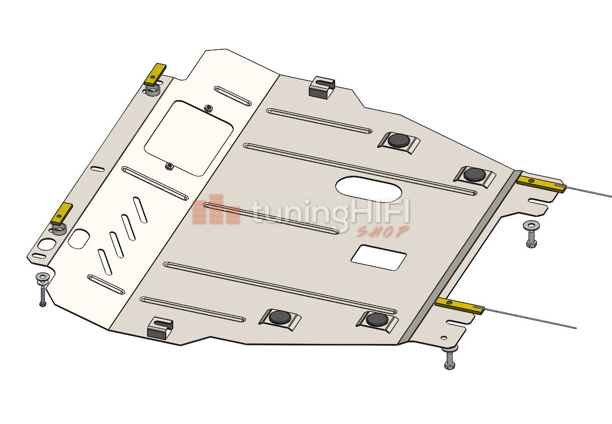 Počas výroby krytov sa používajú oceľové plechy valcované za studena hrúbky 2 mm, ktoré majú dostatočnú elasticitu, vďaka čomu sa vylučuje poškodenie v dôsledku nárazu karosárskych dielov auta v miestach upevnenia krytu. Počas projektovania sa používajú najmodernejšie systémy trojrozmerného modelovania. Všetky diely prechádzajú kontrolou proti deformácii ešte vo fáze spracovania, čo vylučuje poškodenie častí automobilu v prípade narazenia na prekážku. Centrálna časť krytu neprekáža posunutiu motora pri čelnej zrážke, čomu prispievajú segmentné výstužné rebrá, ktoré zosilňujú konštrukciu a sú zalisované vo forme. To umožnilo znížiť váhu výrobku a tiež zvýšiť jeho ochranné vlastnosti. Špeciálne otvory pre pasívne chladenie vzduchom nemení teplotný režim fungovania motora a prevodovky (bez ohľadu na typ prevodovky). V automobiloch, ktoré nemajú pomocný rám motora, sa používa pružinový držiak, ktorý absorbuje nárazy. Pre upevnenie v ťažko prístupných miestach sa používajú špeciálne, montážne doštičky. Počas výroby sa používajú CNC stroje, ktoré umožňujú dosiahnutie stopercentnej kvality výrobkov danej série. Všetky upevňovacie diely sú pozinkované galvanickým zinkom proti korózii. Výrobky sa balia do bublinkovej fólie pre ochranu počas transportu. Do každého balenia je vložený podrobný návod na montáž do automobilu.