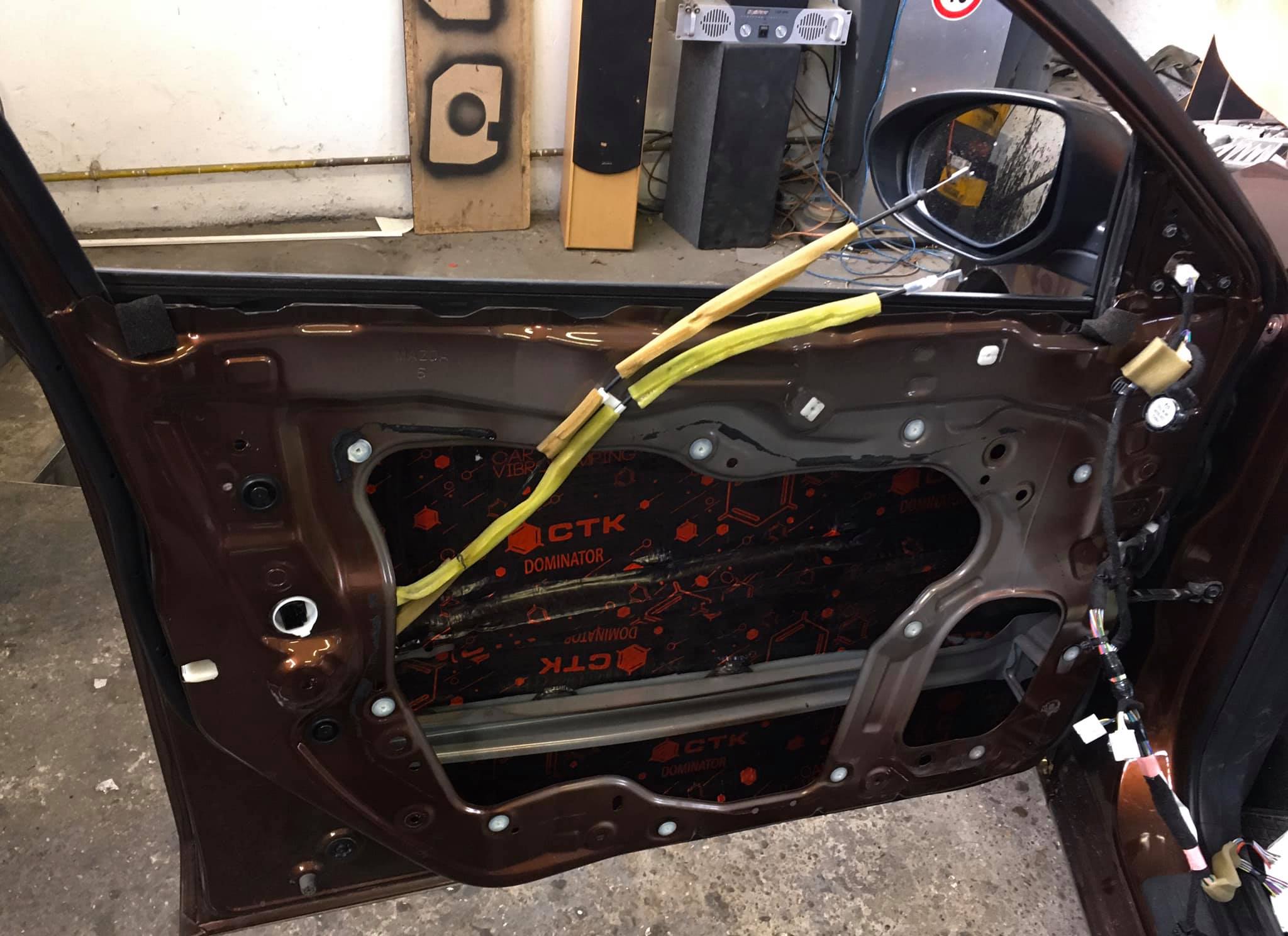 výmenena predných a zadných reproduktorov DD AUDIO•DC6.5 komplet tlmenie dverí, kufra, výroba subwooferového boxu na zákazku kde sú osadené basové reproduktory 2x DD AUDIO•512