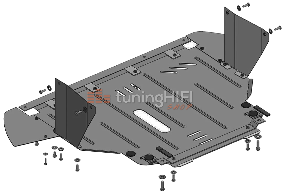 Počas výroby krytov sa používajú oceľové plechy valcované za studena hrúbky 2 mm, ktoré majú dostatočnú elasticitu, vďaka čomu sa vylučuje poškodenie v dôsledku nárazu karosárskych dielov auta v miestach upevnenia krytu. Počas projektovania sa používajú najmodernejšie systémy trojrozmerného modelovania. Všetky diely prechádzajú kontrolou proti deformácii ešte vo fáze spracovania, čo vylučuje poškodenie častí automobilu v prípade narazenia na prekážku. Centrálna časť krytu neprekáža posunutiu motora pri čelnej zrážke, čomu prispievajú segmentné výstužné rebrá, ktoré zosilňujú konštrukciu a sú zalisované vo forme. To umožnilo znížiť váhu výrobku a tiež zvýšiť jeho ochranné vlastnosti. Špeciálne otvory pre pasívne chladenie vzduchom nemení teplotný režim fungovania motora a prevodovky (bez ohľadu na typ prevodovky). V automobiloch, ktoré nemajú pomocný rám motora, sa používa pružinový držiak, ktorý absorbuje nárazy. Pre upevnenie v ťažko prístupných miestach sa používajú špeciálne, montážne doštičky. Počas výroby sa používajú CNC stroje, ktoré umožňujú dosiahnutie stopercentnej kvality výrobkov danej série. Všetky upevňovacie diely sú pozinkované galvanickým zinkom proti korózii. Výrobky sa balia do bublinkovej fólie pre ochranu počas transportu. Do každého balenia je vložený podrobný návod na montáž do automobilu.