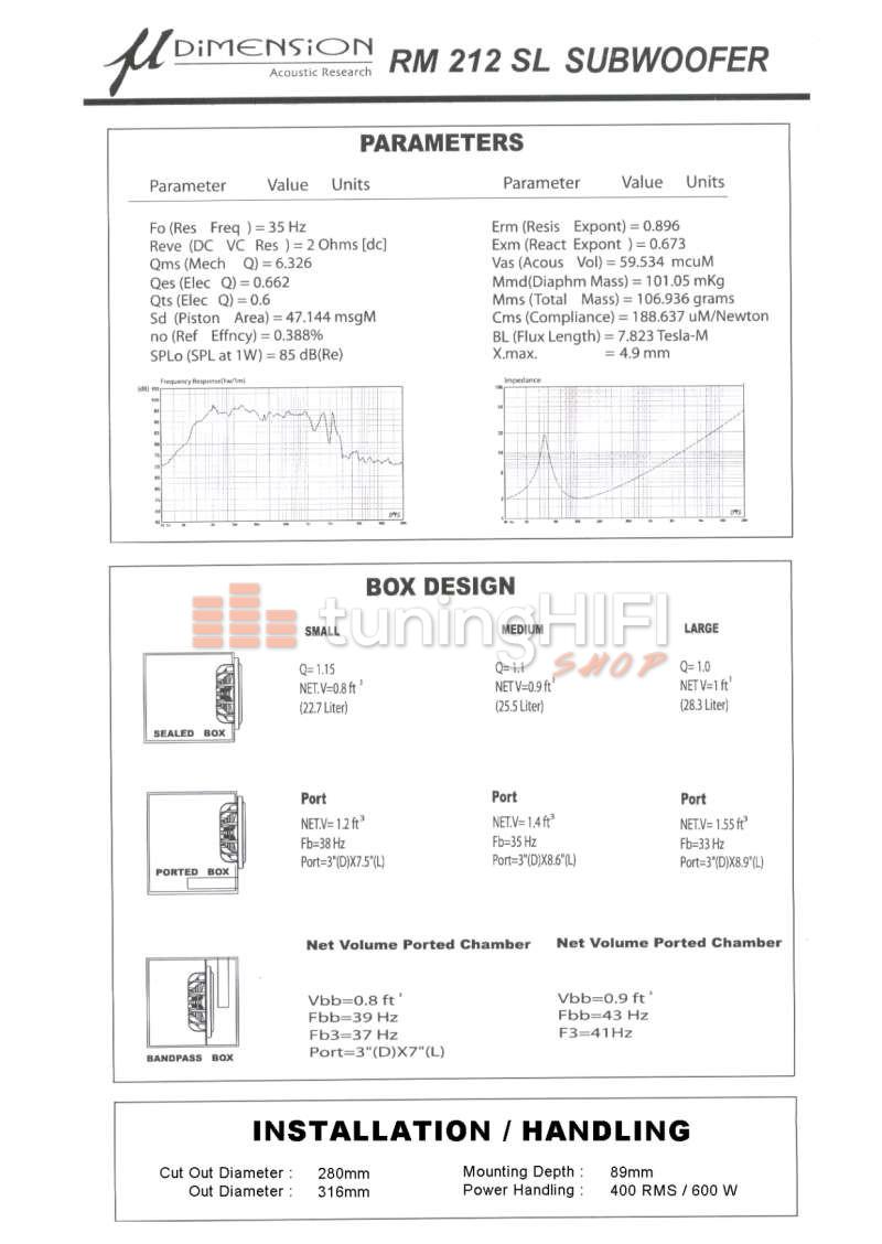 RM 212 SL - BORN IN JAPAN 30cm/12" Subwoofer - 2x2Ohm 400 RMS - 600 W/Peak RM Series - Beginning a new Tradition of High End SlimLine Flatcone drivers